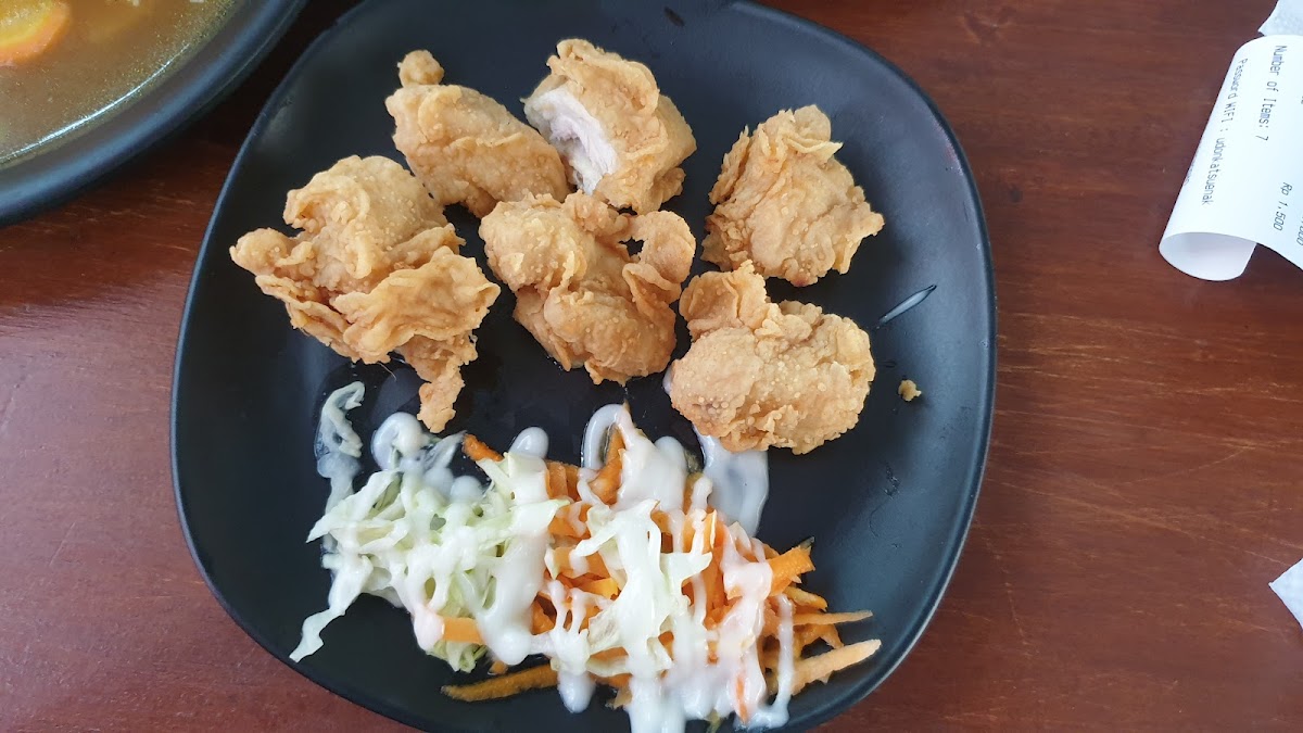 One of the most delicious ramen in Salatiga. You can choose either ramen or udon for the noodles. Basically, there are 3 options for the soup: tori, curry, and spicy. I think the curry is rich and flavorful. There are many options of toppings, like karage, chicken katsu, ebi furai, and so on. A bowl of ramen is served with a half of soft boiled egg, seaweed, corn, onion springs, and black jelly mushrooms. There are some snacks provided like purin, corn ribs, takoyaki, enoki, and ebi furai. There is free refill for ocha. The condiments are chopped chilli, spring onion, shoyu, chilli powder/ flakes, and chilli sauce. When you visit Yoisho, don't forget to greet cheezu -- the Yoisho's orange male cat who often wanders the area.